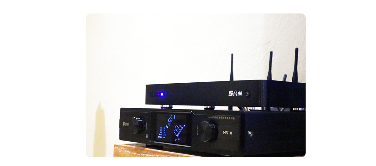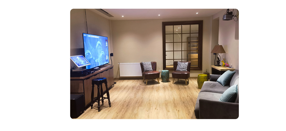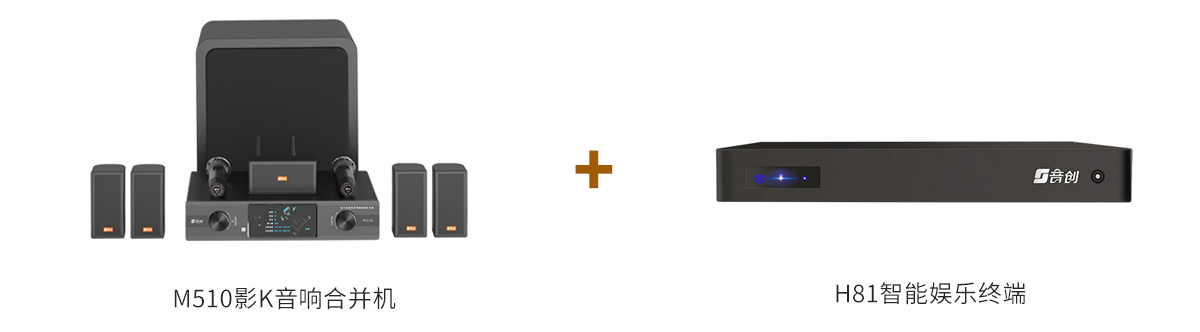 鉴于是在原有客厅加入影K系统,落地式5.1环绕声道家庭影院,是最合适的选择。音创M510影K音箱合并机是集功放+音响系统的组合,这种成熟的搭配方案对于不做装修改造的用户来说特别友好,没有复杂的走线、埋线等操作,解决了不少用户所头疼的问题,搭配音创H81智能娱乐终端,K歌+影院轻松搞定。