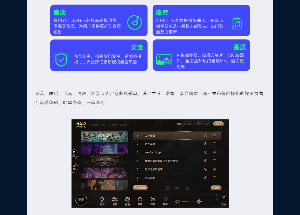累计10000+KTV场所选择音创,部分量贩K、派对K、商务K案例集锦展示。