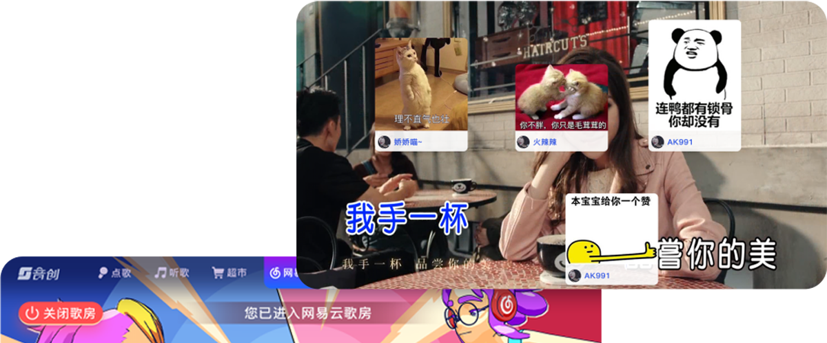 音创近些年一直在致力于帮助传统KTV转型升级,在新推出的量贩K上,音创带来了更加多元化、社交化、互动化、年轻化的娱乐系统和全面管理系统,优质的歌曲资源、霸屏祝福、交友红包、特效弹幕、照片MV等极致大屏娱乐、在线K歌等互动社交,让KTV秒变成为聚会娱乐场。