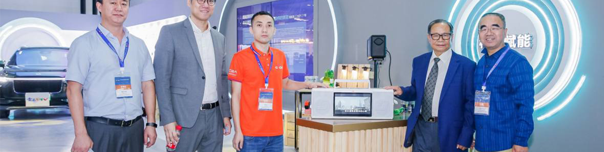 (中国文化娱乐行业协会会长刘金华(右二)等领导参观音创产品并合影)