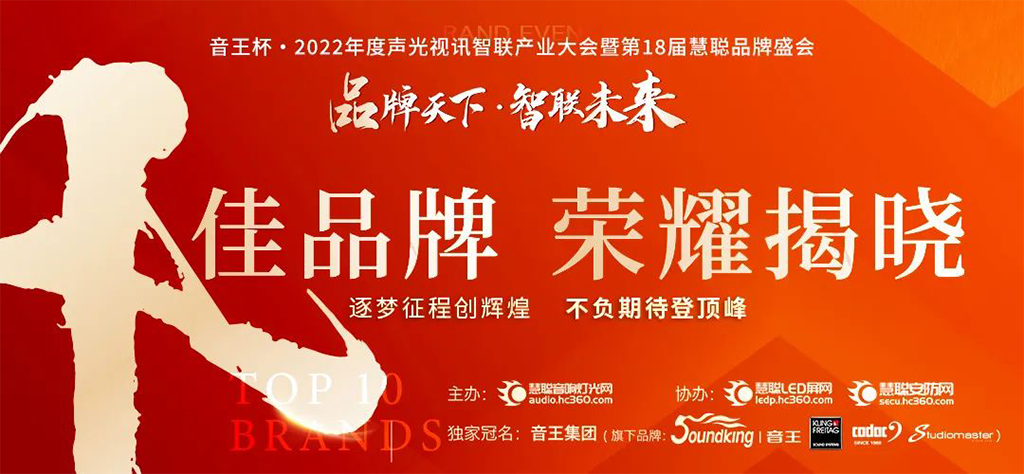 11月2日,由慧聪音响灯光网主办、慧聪LED屏网、慧聪安防网协办的2022声光视讯行业品牌评选十佳品牌荣耀揭晓!