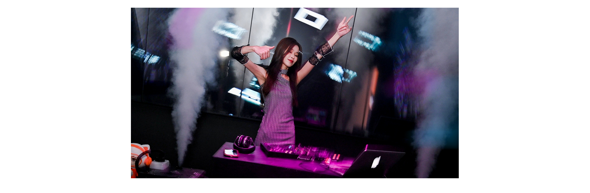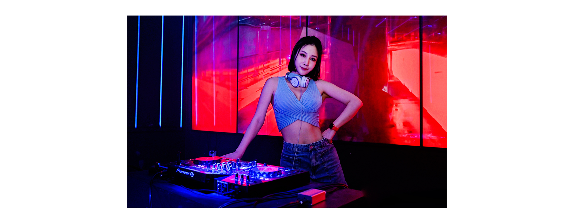 在商用体验厅现场,音创还特别邀请了劲爆美女DJ进行现场打碟表演。劲爆的节奏,畅嗨的氛围,配合沉浸声光影,掀起现场狂欢。