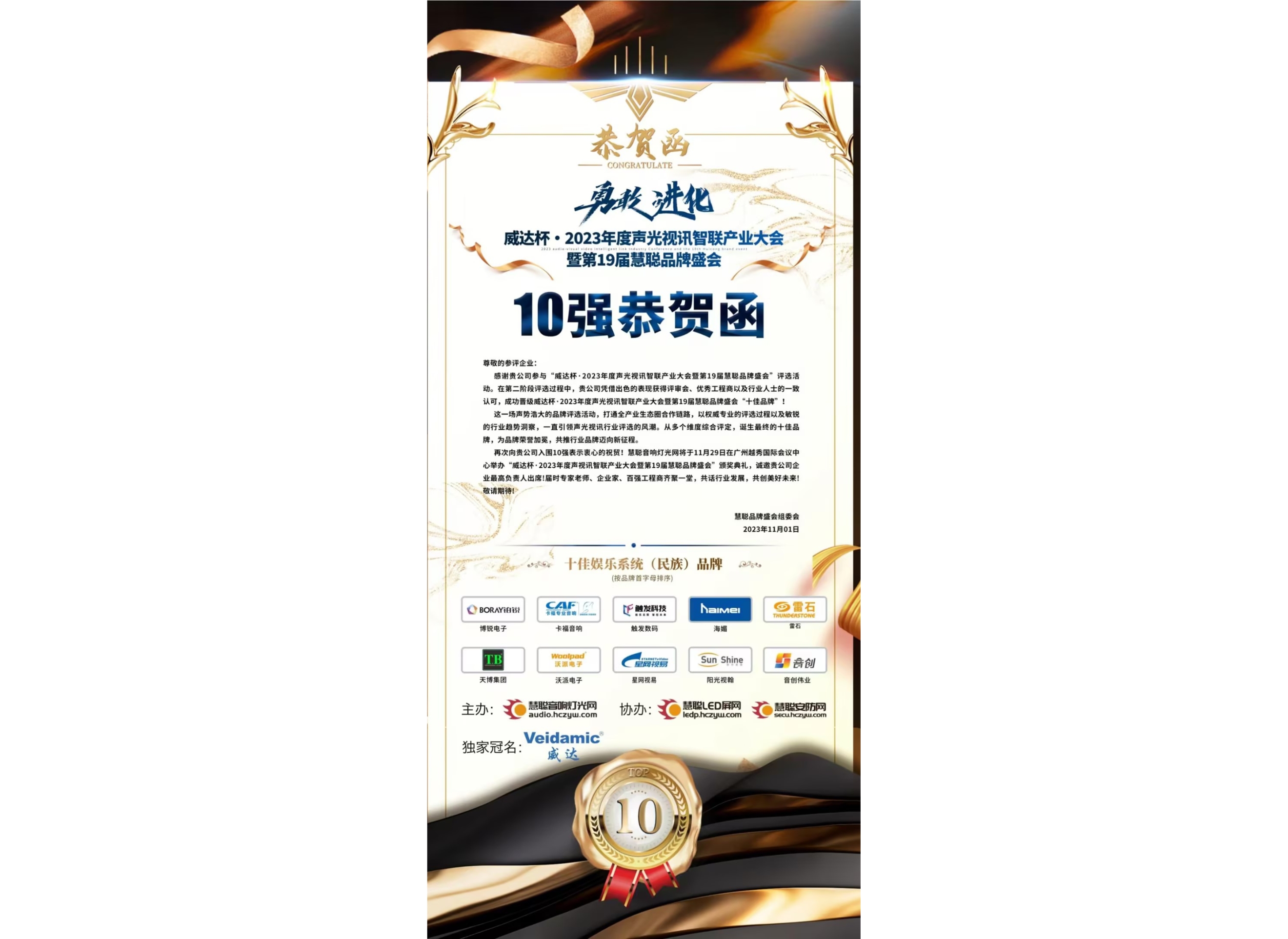 11月1日,由慧聪音响灯光网主办,慧聪LED屏网、慧聪安防网协办的“威达杯·2023声光视讯行业品牌评选”十佳品牌、百强工程商今日荣耀揭晓!