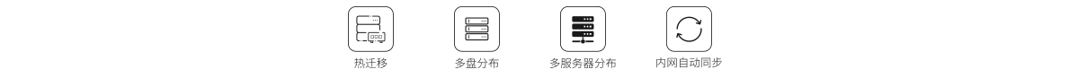 热迁移、多盘分布、多服务器分布、内网自动同步。