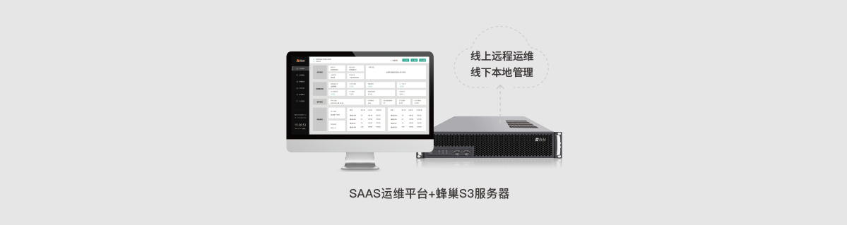 蜂巢S3服务器,采用本地管理与SAAS云端架构相结合的模式,打造【SAAS运维平台】。将传统线下服务器模式和最新线上云端模式整合,全新终端设备管理模式,线上线下数据互通。线上远程管理,随时掌控,运维更便捷、数据更安全,提高经营效率。线下本地管理方便简单,充分满足应急需求,减少经营风险。