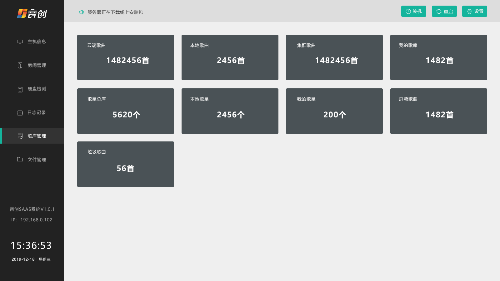 KTV包间多、设备多、系统设置复杂,无法快速上手,场所人员流动性大,岗前培训不方便,需单独设置专业技术岗位,将造成场所经营的人力成本增高。借助云端运营平台,实现对服务器管理、包厢终端设置、包厢终端管控等专业技术层面的远程化。只需一部手机,随时随地远程操作和管理。降低场所的人工成本,提高场所快速响应的工作效率。